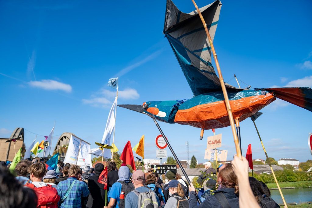 2000 people gathered against “the project of the century” as it is dubbed by its very own promoters. The “Canal Seine Nord Europe”, in short Mega Canal for its opponents, is the project of a new canal, parallel to an existing one, that should enable mass industrial agricultural exports outside of France, and equally big imports of the necessary components such as sand and gravels for the construction industry. Cutting the north of France in two, a region already economically devastated and voting mainly to the far right, its goal is to boost grain exports, and turn the whole region into a “logistics hub” with an estimated additional 8 million trucks on the roads.